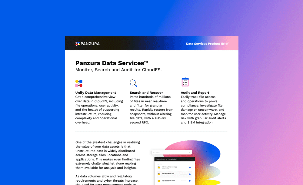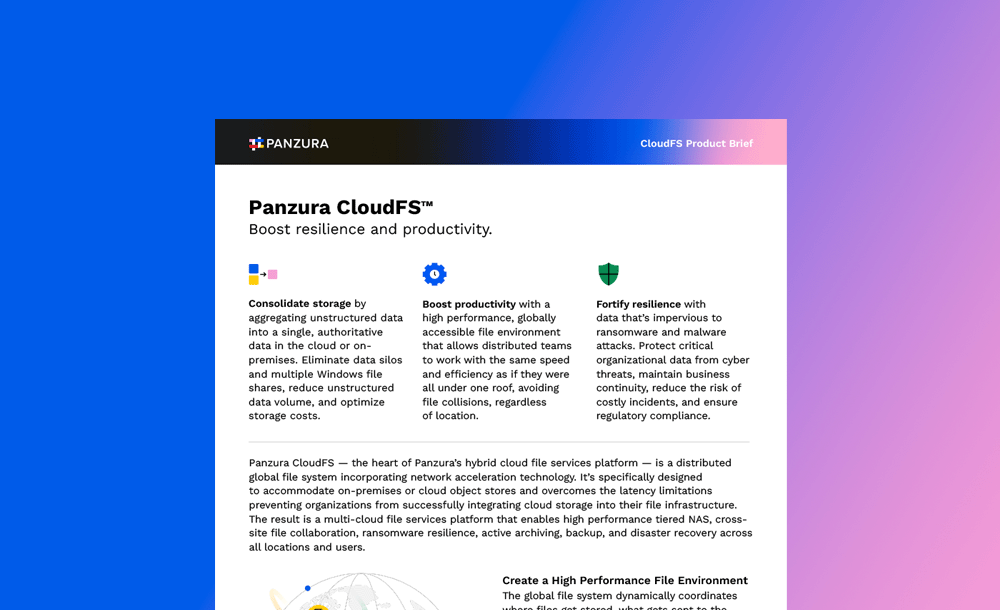 Panzura CloudFS boosts data resilience and organizational productivity by consolidating storage...