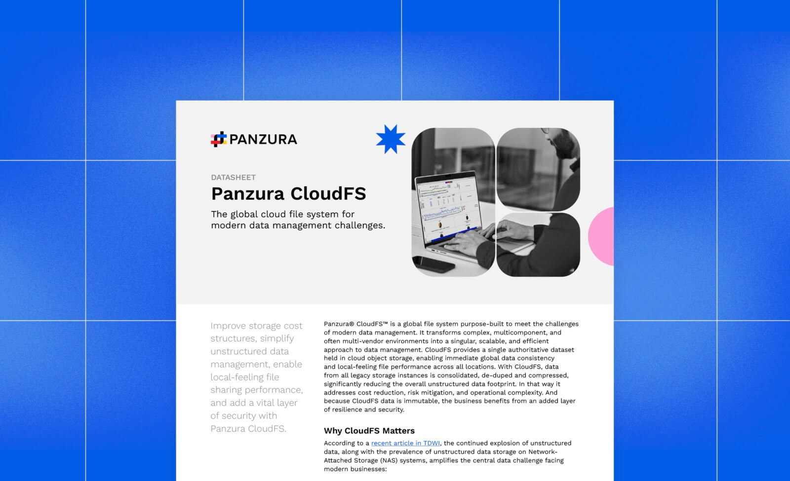 Panzura CloudFS Datasheet Panzura® CloudFSTM is the core of the Panzura hybrid cloud file platform. It's a global file system... Read more